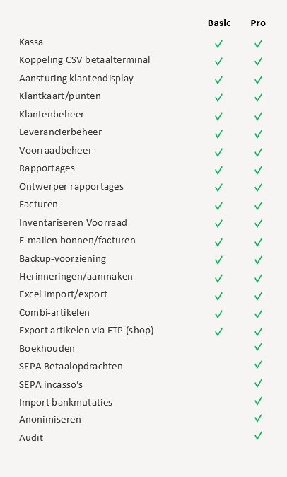 Vergelijking Basic-, Pro-versie: